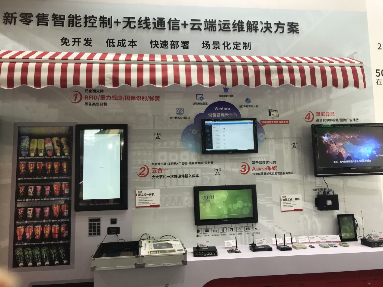 基于以上行業(yè)客戶需求,宏電提供智能控制+無線通信+云端運(yùn)維解決方案,該方案主要由智能工業(yè)計(jì)算機(jī)、Wedora設(shè)備云管理平臺組成,利用宏電智能工業(yè)計(jì)算機(jī)可一機(jī)智能控制售貨機(jī)多種外設(shè),提供穩(wěn)定可靠的4G無線通信網(wǎng)絡(luò),深度優(yōu)化的安卓系統(tǒng)可靈活安裝各類售賣APP,設(shè)備云管理平臺實(shí)現(xiàn)設(shè)備遠(yuǎn)程監(jiān)控管理,幫助行業(yè)客戶實(shí)現(xiàn)設(shè)備的聯(lián)網(wǎng)互通,快速部署,減少運(yùn)維成本。