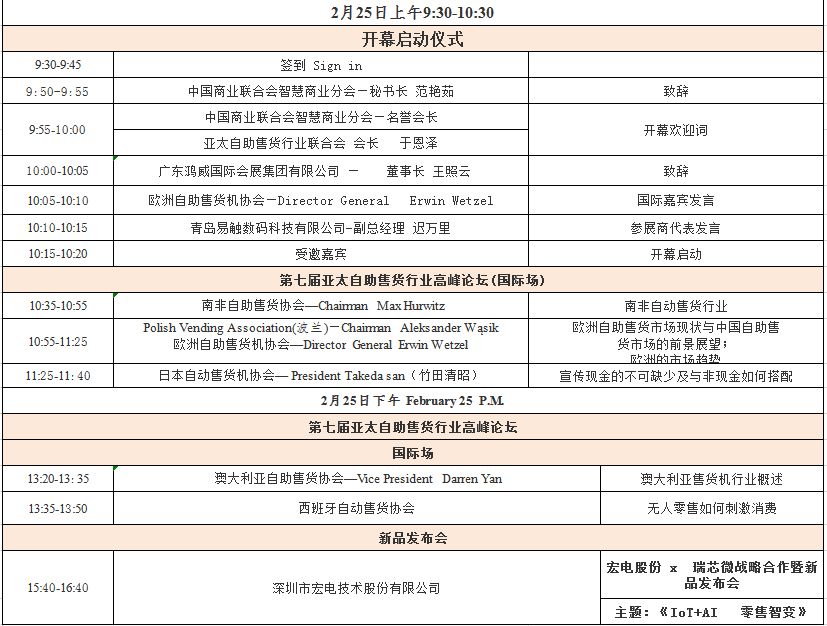 附2月25日自助售貨行業(yè)高峰論壇&新品發(fā)布會會議議程