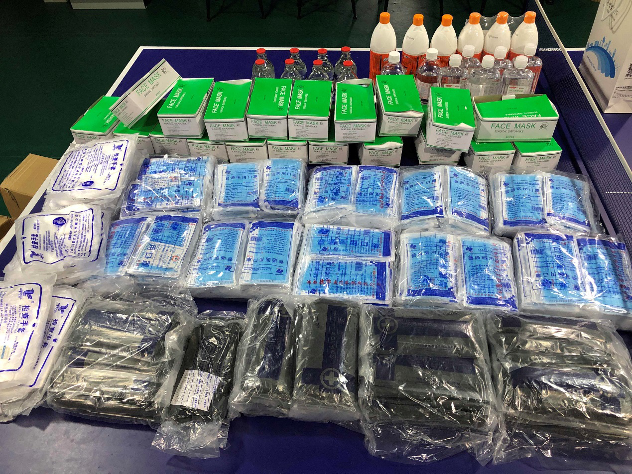▲黨支部復(fù)工員工測量體溫,派發(fā)口罩及一次性手套