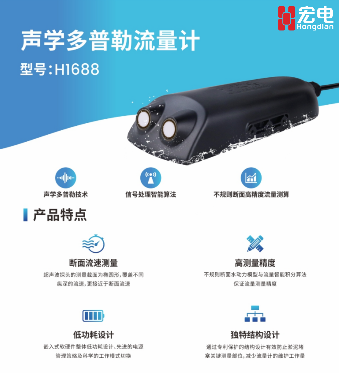 系統(tǒng)中使用的H1688聲學(xué)多普勒流量計(jì)是一款性?xún)r(jià)比非常高的接觸式聲學(xué)多普勒測(cè)流設(shè)備,尤其適用于濁度大于20mg/L的流體流量測(cè)量,同系列產(chǎn)品也可應(yīng)用于固液兩相流的流量測(cè)量。具有微功耗、高精度、寬量程等特點(diǎn),操作簡(jiǎn)便,可同時(shí)檢測(cè)流量、流速、水位、水溫、剩余電量、電壓等多種參數(shù),能夠很好的滿(mǎn)足用戶(hù)對(duì)于產(chǎn)品高精度和高穩(wěn)定性的需求。與其它常規(guī)類(lèi)型流量計(jì)或其它超聲波流量計(jì)相比,具有高精度、高可靠性、高性能、價(jià)格適中等顯著特點(diǎn),具體技術(shù)特點(diǎn)如下: