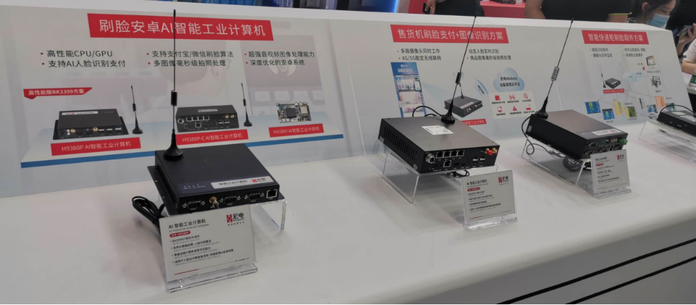 展會(huì)現(xiàn)場(chǎng)展示的刷臉支付智能貨柜吸引參觀觀眾紛紛體驗(yàn),無(wú)需掃碼支付,只需人臉對(duì)準(zhǔn)刷臉攝像頭,瞬間即可識(shí)別綁定的手機(jī)號(hào),確認(rèn)手機(jī)號(hào)后四位即可開門隨意選擇豐富的商品,關(guān)門即可推送結(jié)算的商品訂單,這款刷臉智能貨柜搭載宏電AI智能工業(yè)計(jì)算機(jī)H9380P,其采用RK3399六核芯片,能流暢運(yùn)行支付寶、微信刷臉?biāo)惴?,具?/font> 20ms 毫秒延時(shí)、90Hz 刷新率,能夠快速流暢實(shí)現(xiàn)人臉檢測(cè)、提取、對(duì)比,可適應(yīng)3D動(dòng)態(tài)視覺(jué)方案,打通感知到云端,為各類刷臉支付方案提供強(qiáng)有力的軟硬件支撐。目前該產(chǎn)品已成功應(yīng)用于刷臉智能售貨機(jī)、刷臉智能咖啡機(jī)、刷臉智能榨汁機(jī)、刷臉智能快遞柜、超市無(wú)人結(jié)算臺(tái)、刷臉智能碾米機(jī)、刷臉智能垃圾柜等智能終端項(xiàng)目。