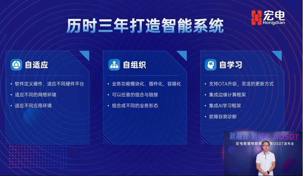 “宏電OSDT物聯(lián)網(wǎng)智能操作系統(tǒng)的發(fā)布,創(chuàng)新性地提出軟件定義終端的理念,融合了成熟的計算機、物聯(lián)網(wǎng)、通信技術(shù),同時集成了新一代邊緣計算、AI智能及容器技術(shù),為智能終端插上了翅膀,是構(gòu)建智能物聯(lián)生態(tài)體系的關(guān)鍵技術(shù)”,大會的最后宏電總工程師郭澤辰指出OSDT操作系統(tǒng)對于賦能行業(yè)具有重大意義。宏電作為物聯(lián)網(wǎng)自主研發(fā)和技術(shù)創(chuàng)新企業(yè),未來將持續(xù)發(fā)揮行業(yè)龍頭效應(yīng),助推物聯(lián)網(wǎng)+新基建快速發(fā)展。