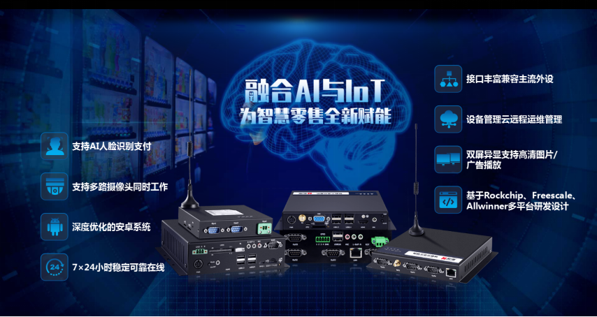 宏電IPC支持Rockchip、Freescale、Allwinner多平臺研發(fā)設(shè)計,基于Android、Linux平臺設(shè)計,集工控機、4G路由器、控制器為一體,具備集成度高、成本低、可擴展性強等特點,是各類自助終端的核心大腦。